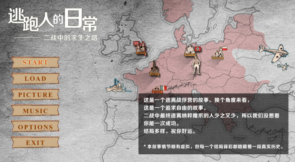 《逃跑人的日常》中,玩家扮演一位从德国战俘营逃跑的英军士兵。总共86个结局中,玩家的各种尝试大多以死亡告终。(图/橙光游戏平台)